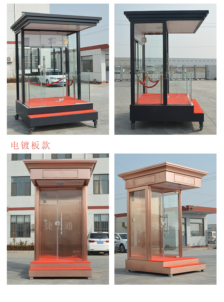 標準配置形象崗亭墻體含保溫材料,屋頂鍍鋅板靜電噴涂,PVC吊頂,室內(nèi)地板復合木地板;加配裝置:工作臺,抽屜,鍵盤,開關插座,暗敷線路(如需加裝空調(diào),請咨詢15822882616)。