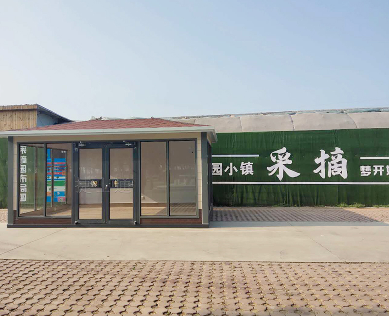 河北保定采摘園售貨屋位于保定市淶水區(qū)農(nóng)業(yè)科教采摘基地,此款售貨屋整體設(shè)計(jì)三面為全玻璃,可將產(chǎn)品的更好展示,來往行人無需進(jìn)門就可看到售賣品