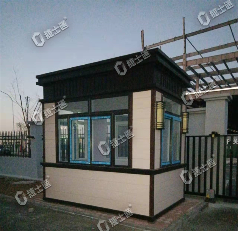崗亭是放在外圍臺階上的,其實對預留位置的話,不會有太大的要求,只需保證一個,地面是平的就可以,那么這樣就很穩(wěn)固了